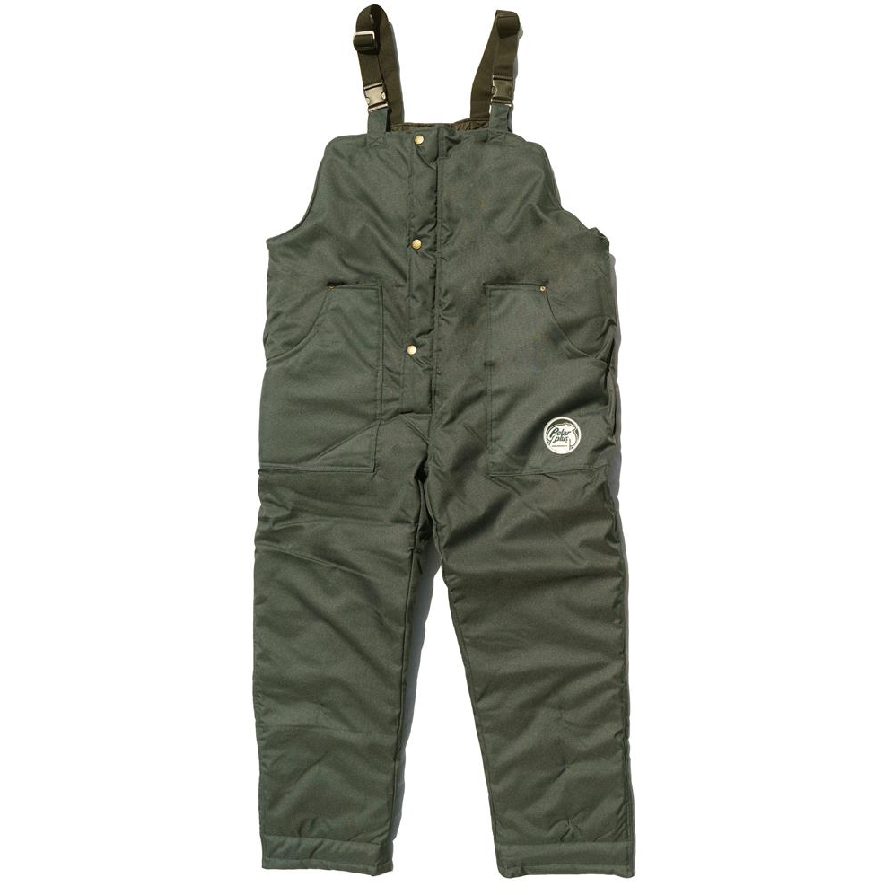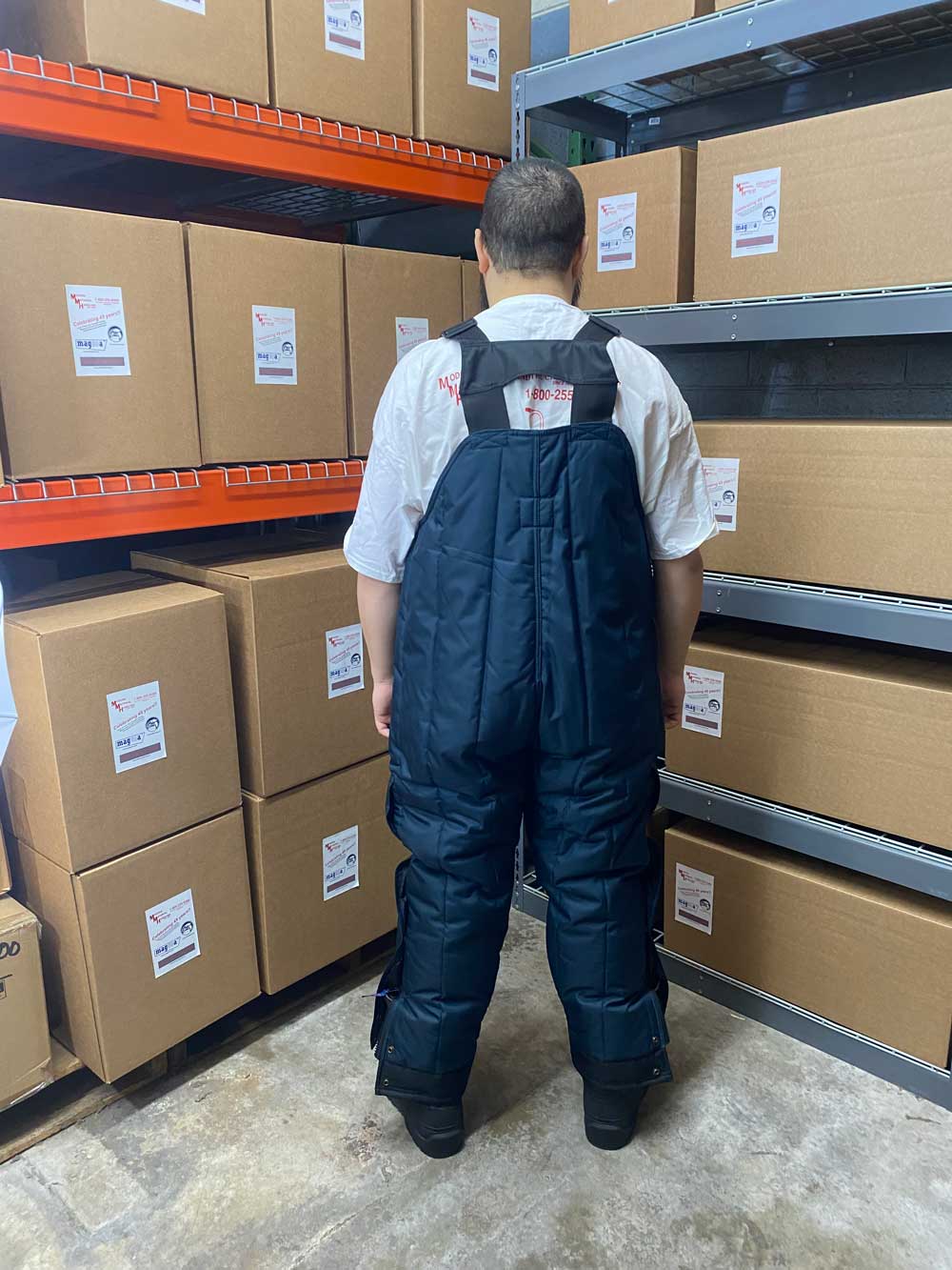 Freezer bib with full elastic suspenders.