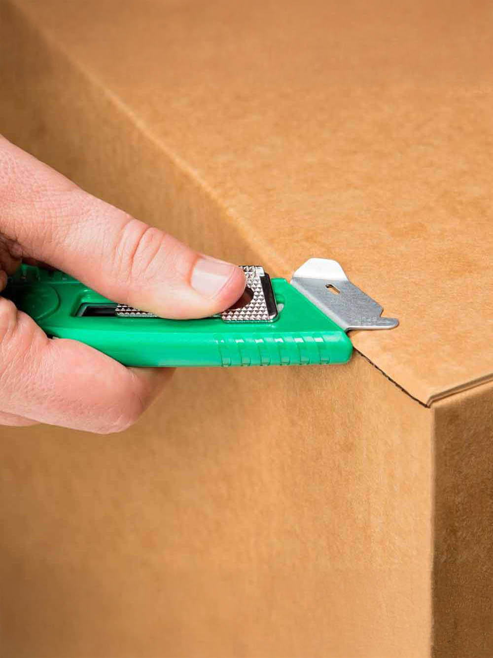 Self-Retract Safety Knife With Fixed Metal Guard for Right Handed Use